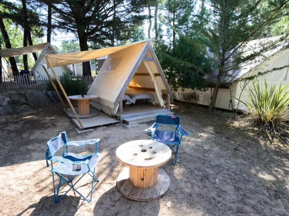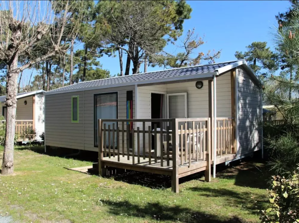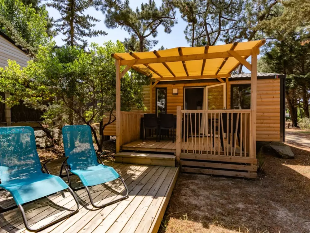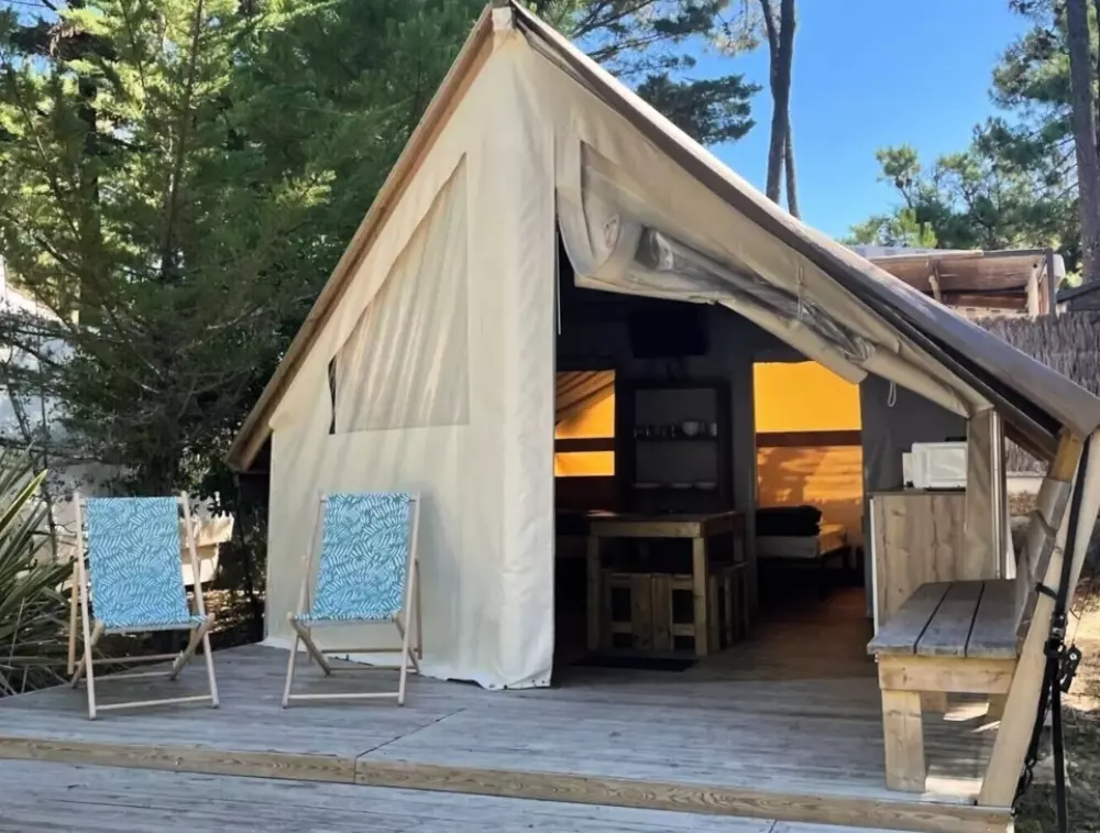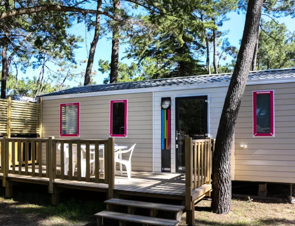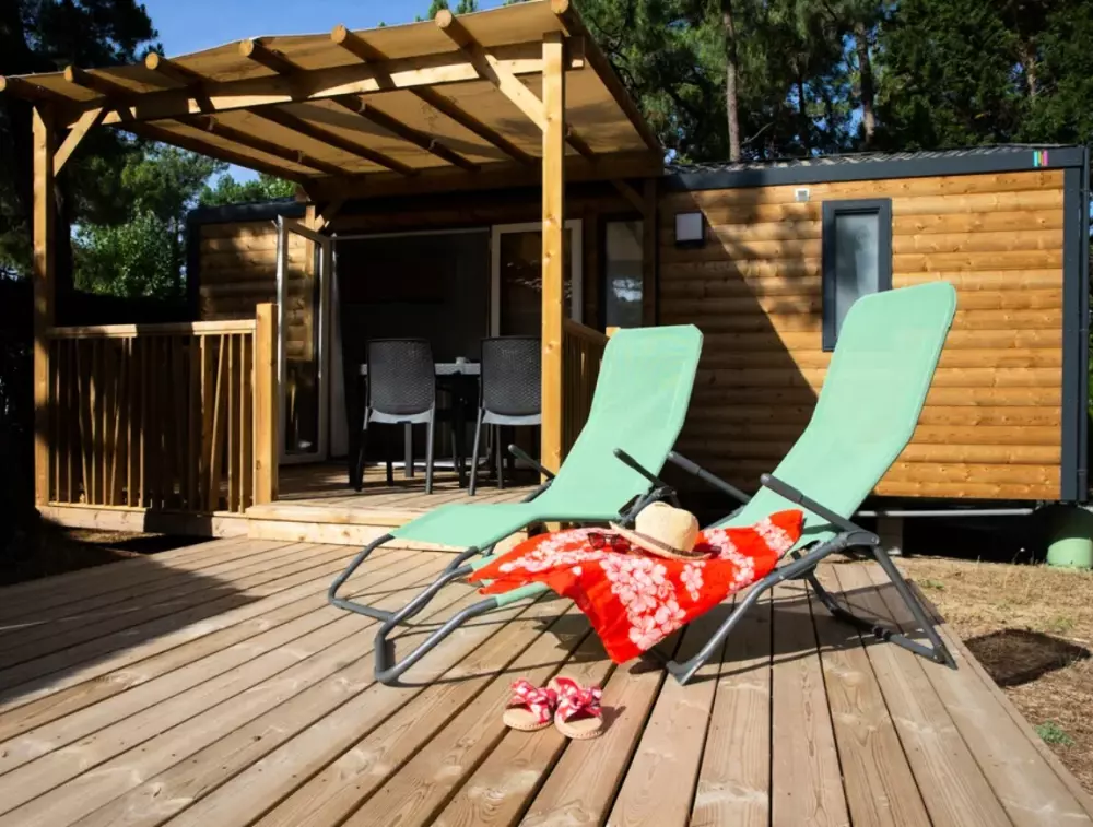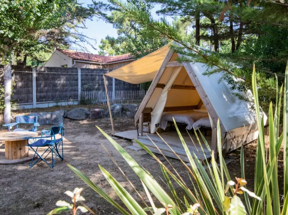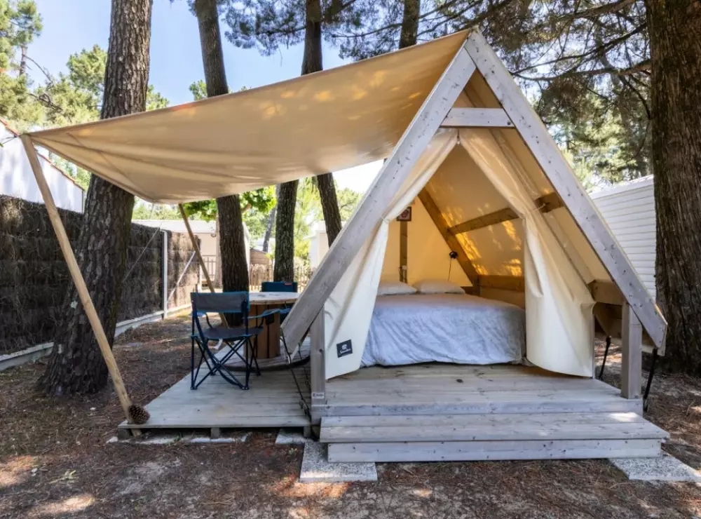 Établi sur 2,4 hectares de pinède, notre camping La Conge comprend des emplacements dont des mobil-homes contemporains et des hébergements insolites comme des tentes Ecolodge ou tentes Trapper Lodge.