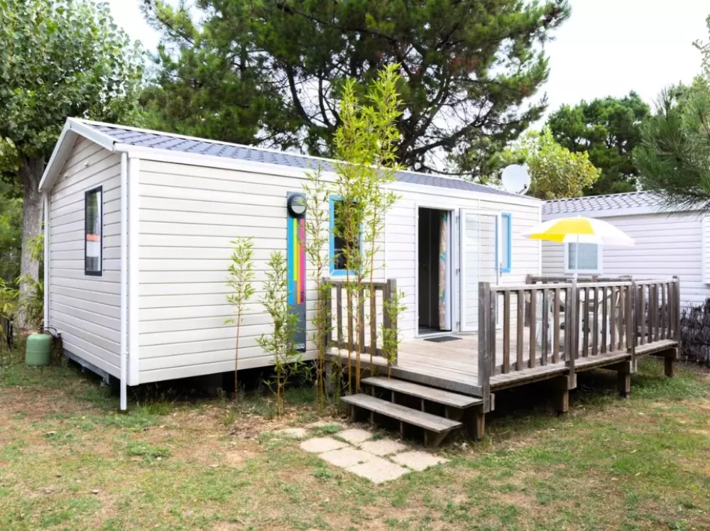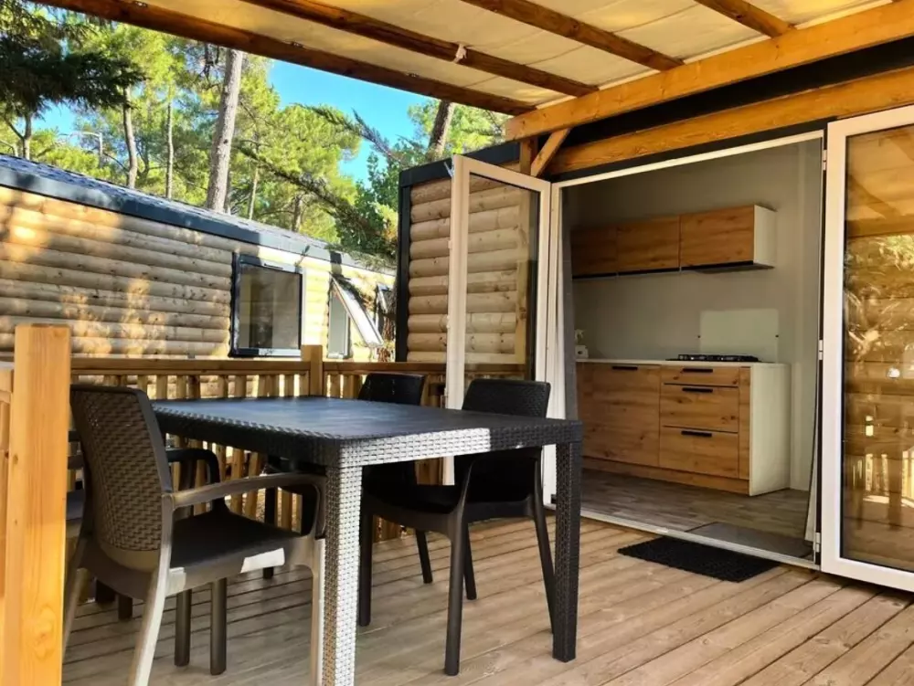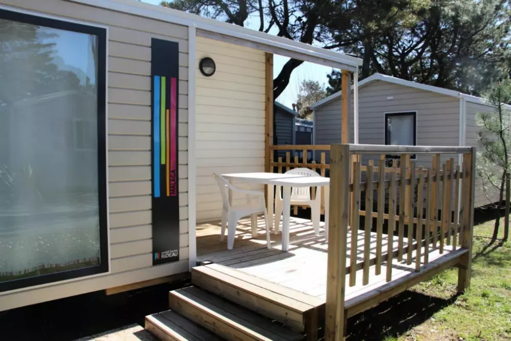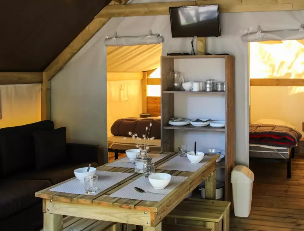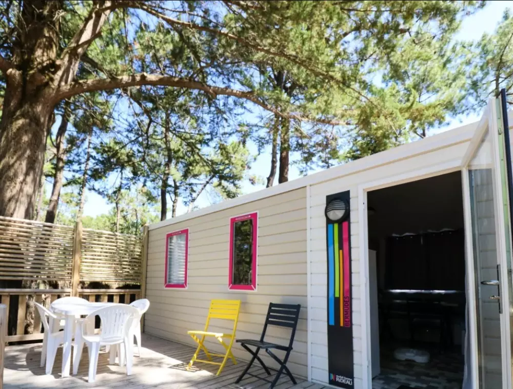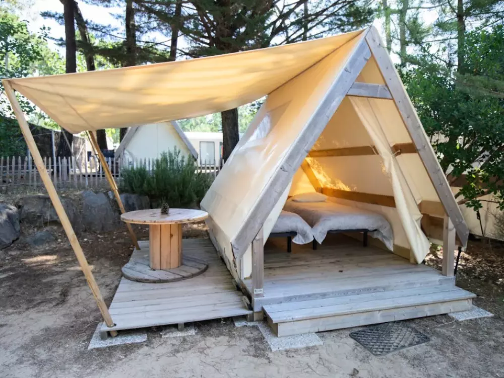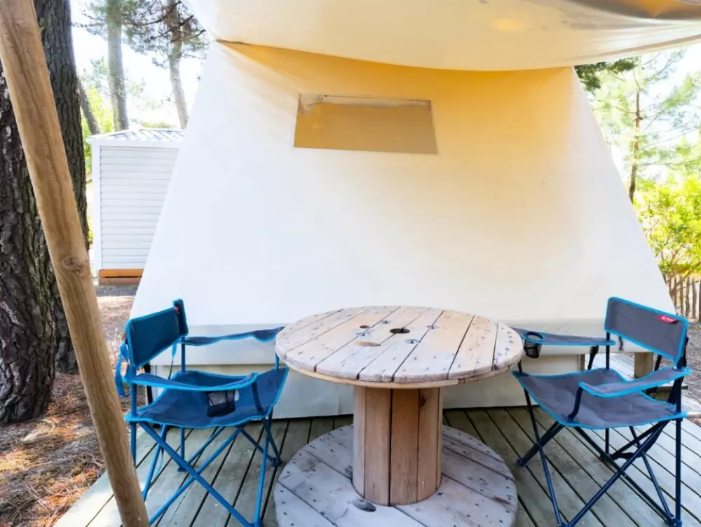 Établi sur 2,4 hectares de pinède, notre camping La Conge comprend des emplacements dont des mobil-homes contemporains et des hébergements insolites comme des tentes Ecolodge ou tentes Trapper Lodge.