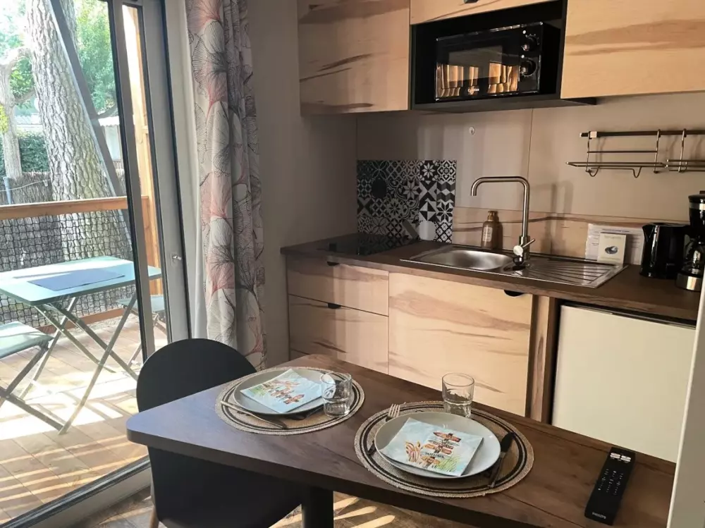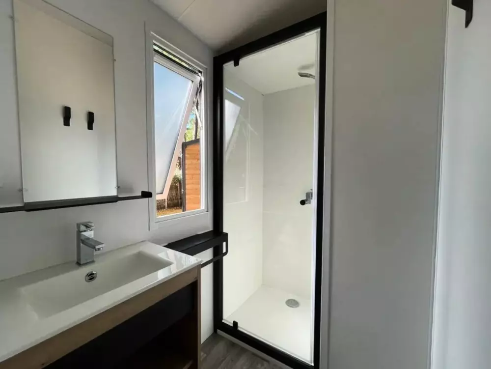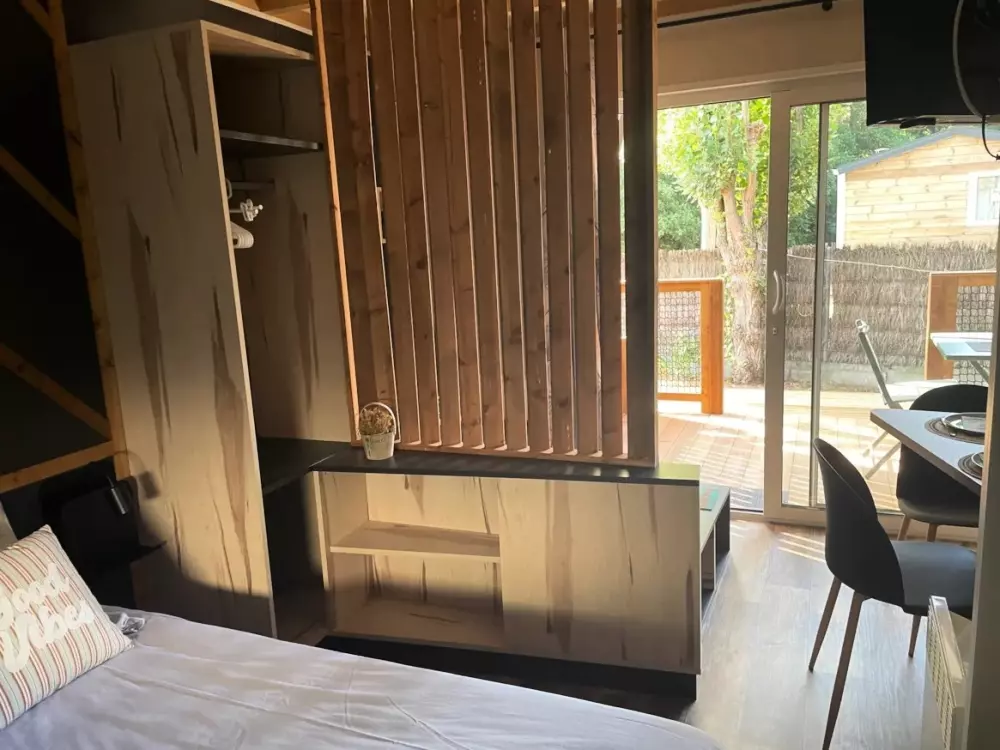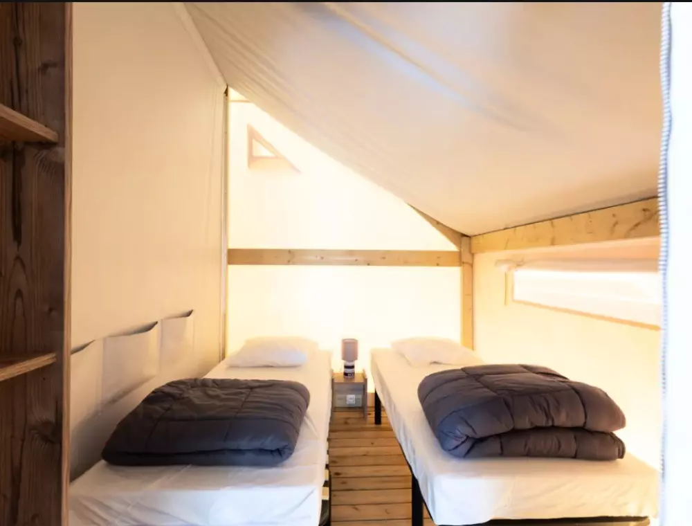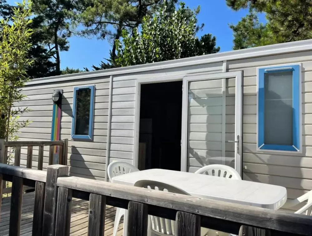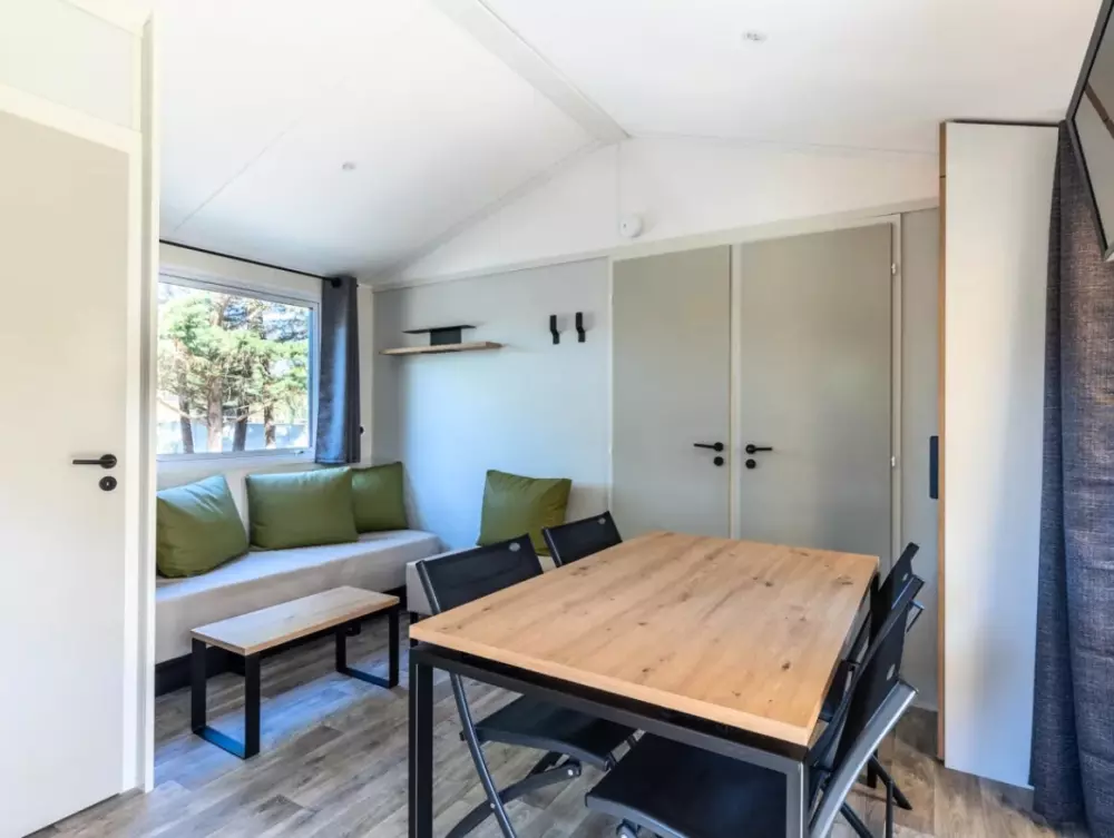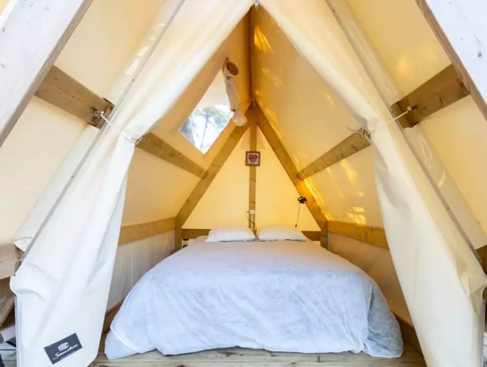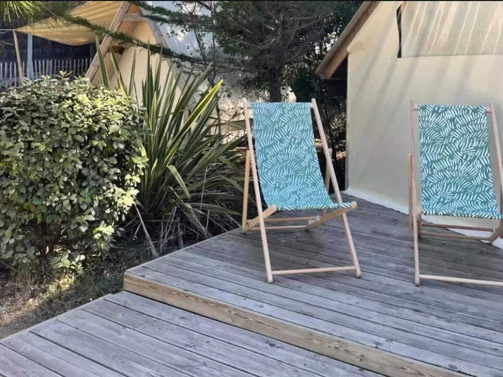 Établi sur 2,4 hectares de pinède, notre camping La Conge comprend des emplacements dont des mobil-homes contemporains et des hébergements insolites comme des tentes Ecolodge ou tentes Trapper Lodge.